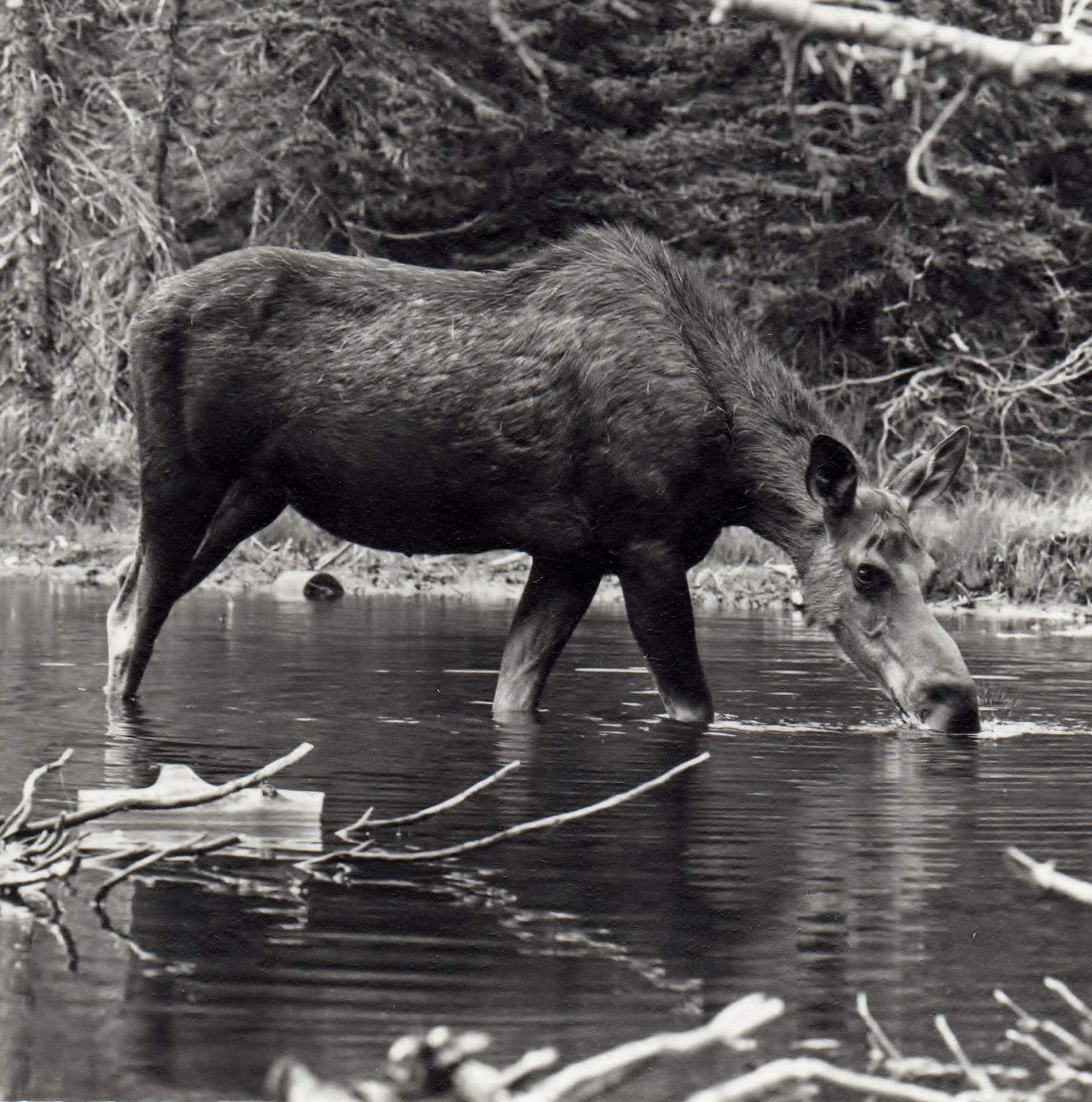 , Alberta, Canada, July 1972. We pull over to photograph a moose.
