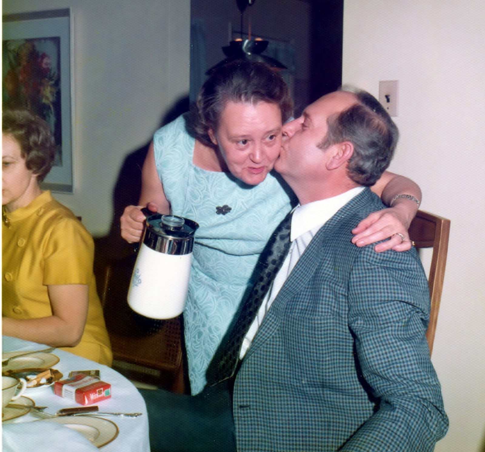 Suburban Chicago, November 1972. Jonė has a little fun with Mr. John, a family friend, while my Mom gets a laugh out of the joke.
