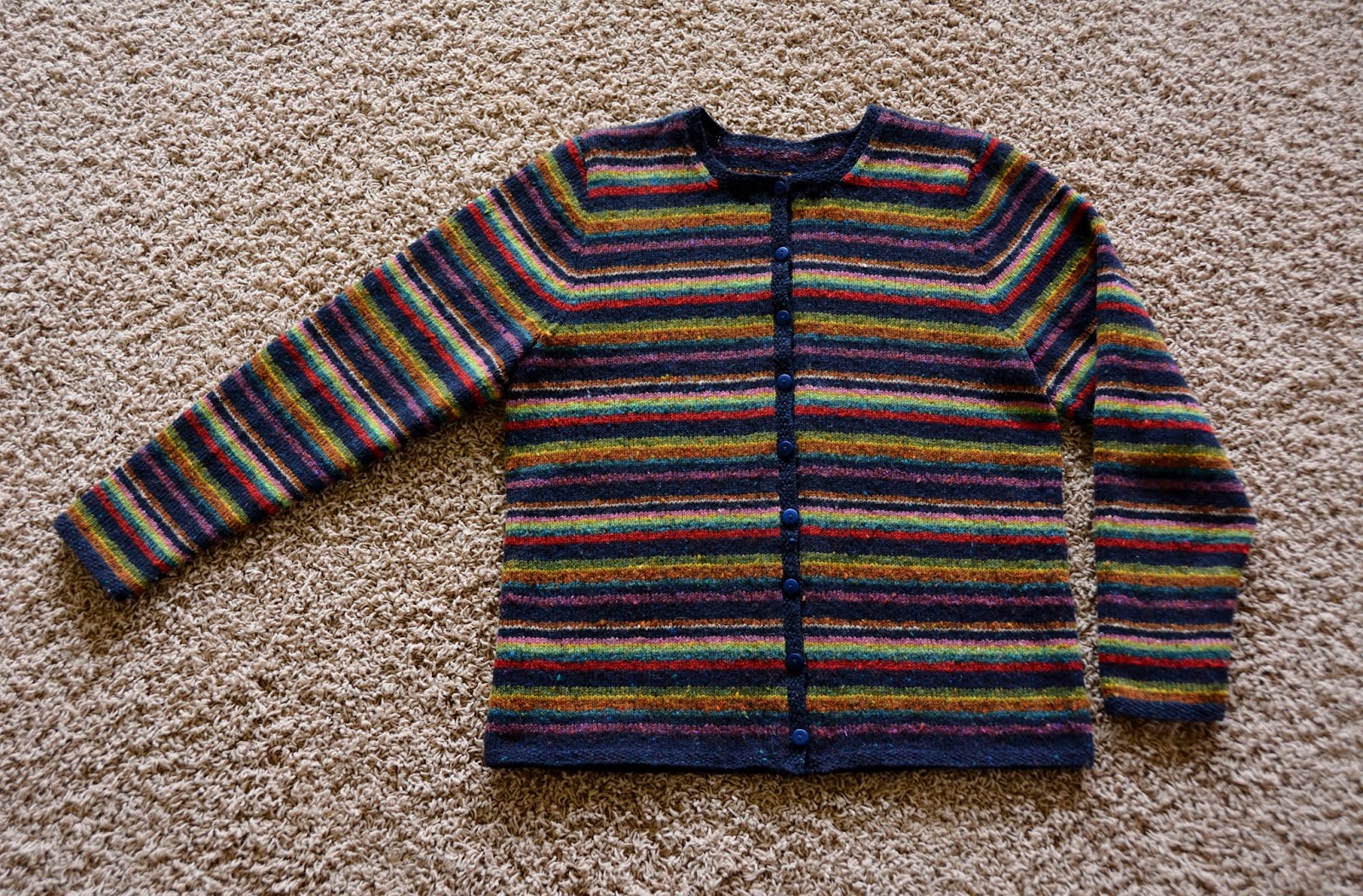 Verona, Wisconsin, December 2015. Here's a new cardigan. The motif, based on a Latvian mitten, is the same one I used in another sweater. Janine Bajus kindly made her interpretation of the motif available to me. I designed the colors based on cowl and tam I knitted earlier.